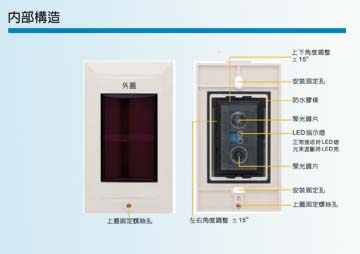 埋入式 可搭配單聯電器盒使用 偵測距離: 12m