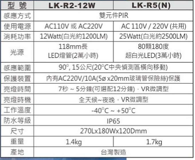 產品型號 : LK-R5N (25W)